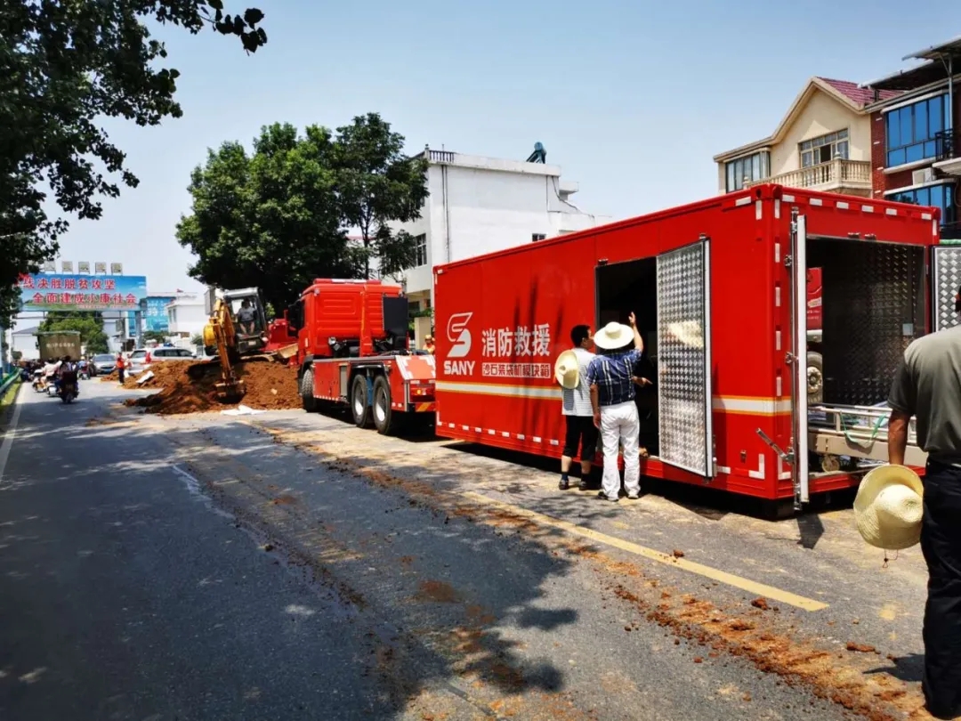 7月13日,針對(duì)江西省境內(nèi)鄱陽(yáng)湖嚴(yán)峻汛情,應(yīng)急管理部緊急調(diào)派湖南、湖北等五省消防救援總隊(duì),馳援鄱陽(yáng)湖。13日晚,接到緊急調(diào)集命令后,三一工程技術(shù)人員迅速集結(jié),駕駛?cè)簧笆b袋機(jī)模塊車星夜兼程14個(gè)小時(shí)1000多公里,跨省增援,于14日清晨抵達(dá)抗洪形勢(shì)最為嚴(yán)峻的九江市彭澤縣。